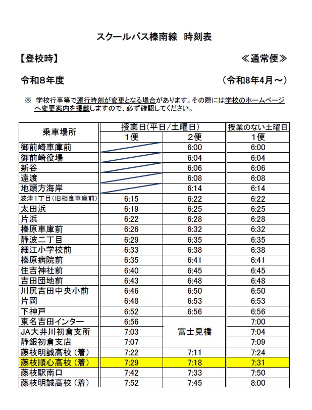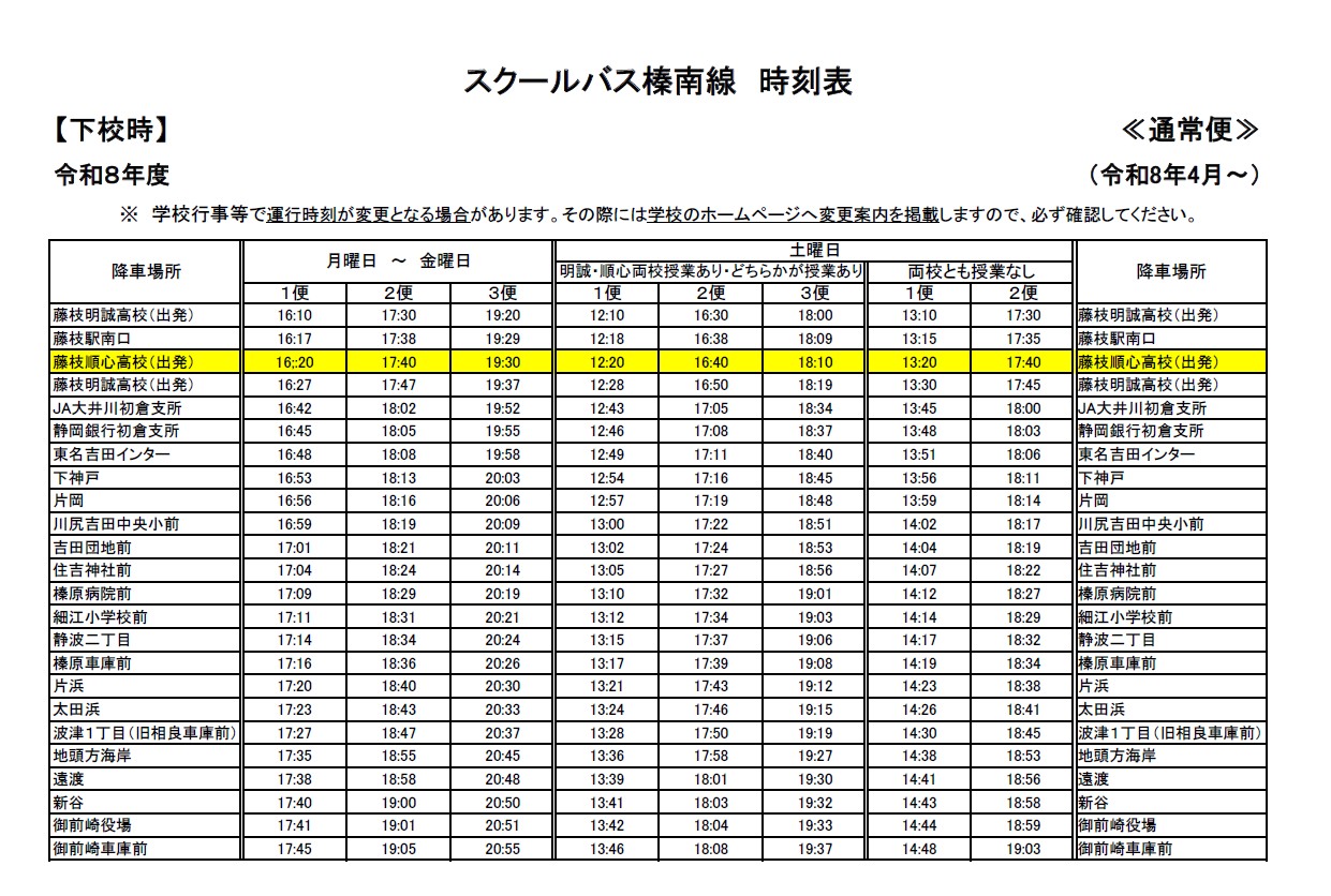 【中学・高校】通常便のダイヤ変更について(改訂版)
